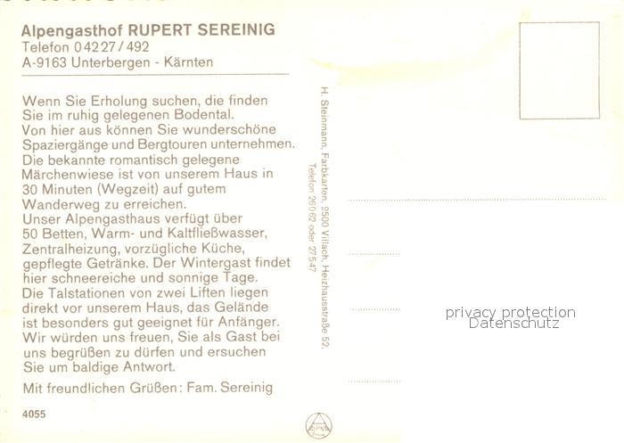 73110971 Unterbergen Ferlach Alpengasthof Sereinig postalisch nicht gelaufen Erhaltung siehe scans [NatalD47] KatCode: 11390211020405