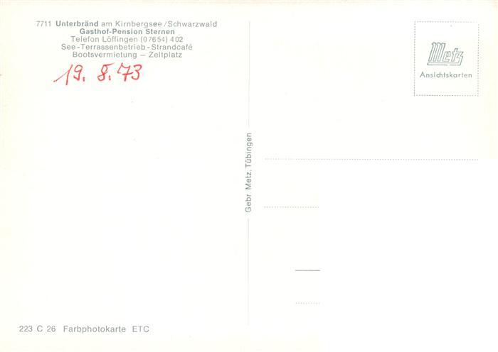 73901055 Unterbraend am Kirnbergsee mit Gasthof Pension Sternen postalisch nicht gelaufen Erhaltung siehe scans [WerneD78] KatCode: 11110008326006