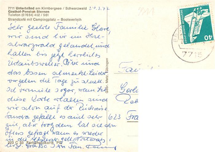 73935406 alte Postkarte Unterbraend Braeunlingen BW Strandcafe mit Campingplatz Bootsverleih postalisch gelaufen Erhaltung siehe scans [WerneD78] KatCode: 11110008326006