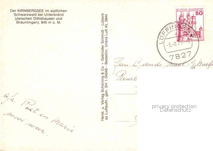 72795667 alte Postkarte Unterbraend Kirnbergsee Schwarzwald Fliegeraufnahme postalisch gelaufen Erhaltung siehe scans [FriedD77] KatCode: 11110008326006