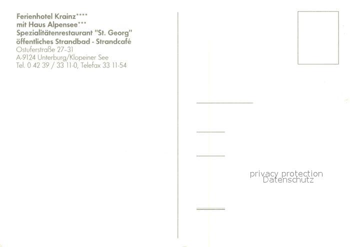 73362960 Unterburg Klopeinersee Ferienhotel Krainz mit Haus Alpensee Restaurant St. Georg Strandbad postalisch nicht gelaufen Erhaltung siehe scans [LiesaD40] KatCode: 11390