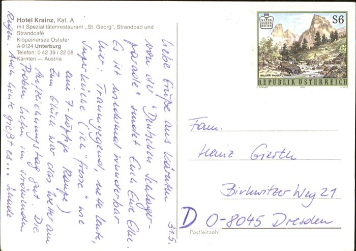 71425182 Unterburg Klopeinersee Hotel Krainz Strandbad postalisch nicht gelaufen Erhaltung siehe scans KatCode: 11390
