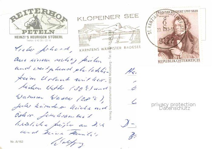 72674193 alte Postkarte Unterburg Klopeinersee Reiterhof Peteln postalisch gelaufen Erhaltung siehe scans [FriedD77] KatCode: 11390
