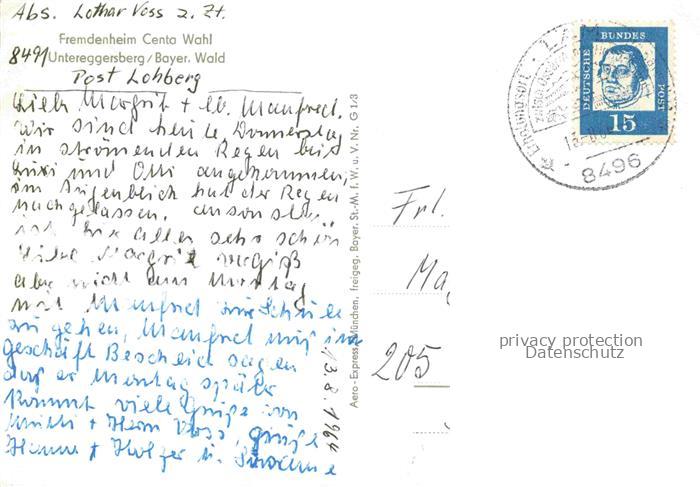 74066162 alte Postkarte Untereggersberg Riedenburg Altmuehltal Kelheim Bayern Fremdenheim Centa Wahl postalisch gelaufen Fliegeraufnahme Erhaltung siehe scans [FriedD77] KatCode: 11110009273164