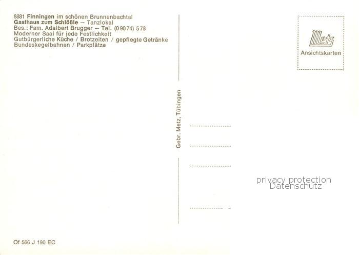 73863314 Unterfinningen Schwaben Ortsansicht mit Kirche Gasthaus zum Schloessle Kegelbahn Festsaal postalisch nicht gelaufen Erhaltung siehe scans [FriedD77] KatCode: 11110009773150