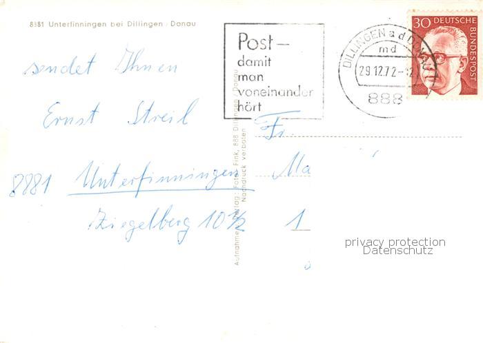 73854488 alte Postkarte Unterfinningen Schwaben Panorama Kirche Inneres Bildstock postalisch gelaufen Erhaltung siehe scans [WerneD78] KatCode: 11110009773150