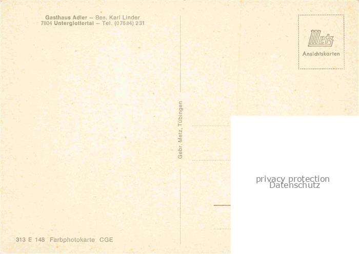 74043149 Unterglottertal Glottertal BW Gasthaus Adler Eingang postalisch nicht gelaufen Erhaltung siehe scans [WerneD78] KatCode: 11110008315041