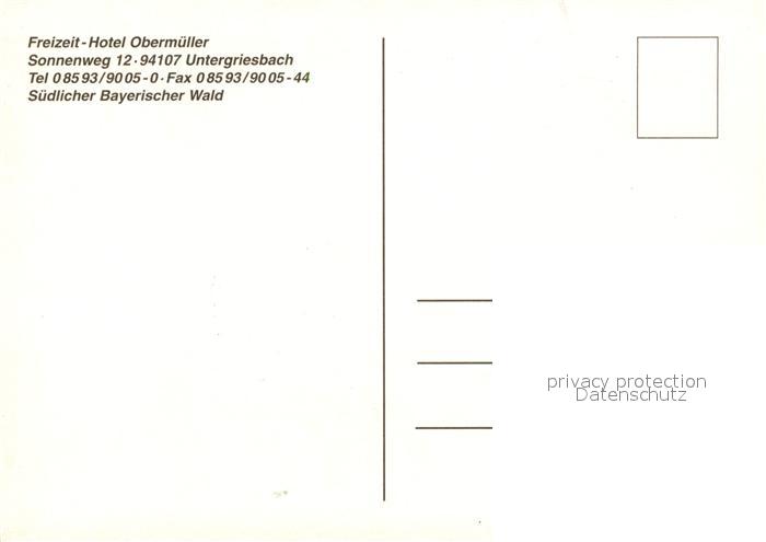 73204315 Untergriesbach Niederbayern Freizeit Hotel Obermueller Bayerischer Wald Donau Uferpromenade postalisch nicht gelaufen Erhaltung siehe scans [FriedD77] KatCode: 11110009275153