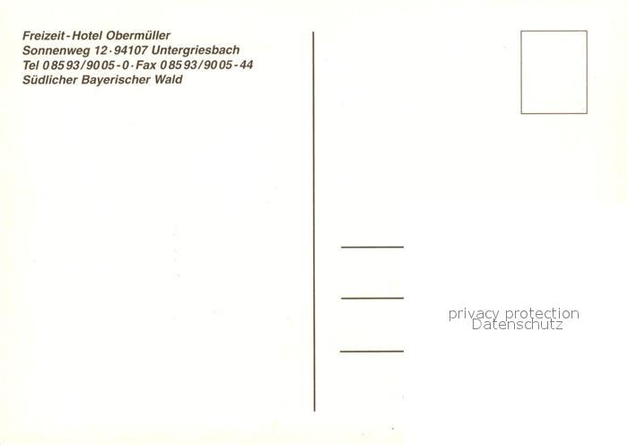 73050817 Untergriesbach Niederbayern Freizeit Hotel Obermueller postalisch nicht gelaufen Erhaltung siehe scans [KathaD81] KatCode: 11110009275153