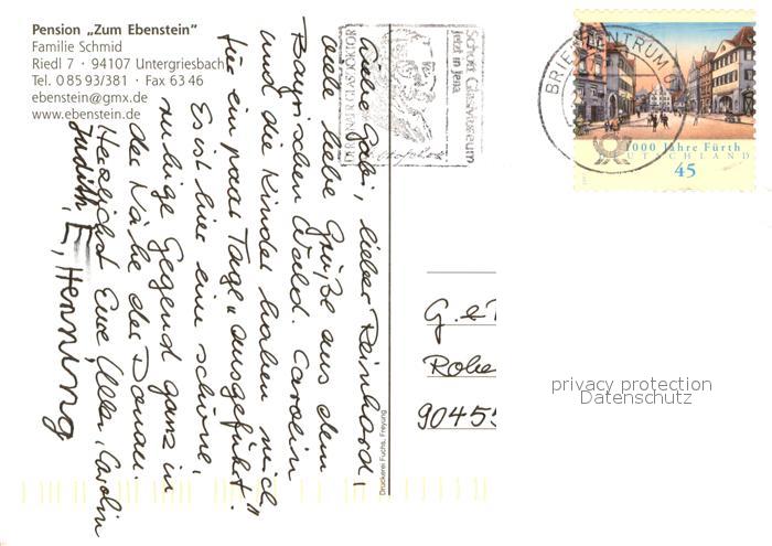 73646423 alte Postkarte Untergriesbach Niederbayern Pension zum Ebenstein Hallenbad Gottsdorf Rannasee Passau Spielplatz Terrasse postalisch gelaufen Erhaltung siehe scans [WerneD78] KatCode: 11110009275153