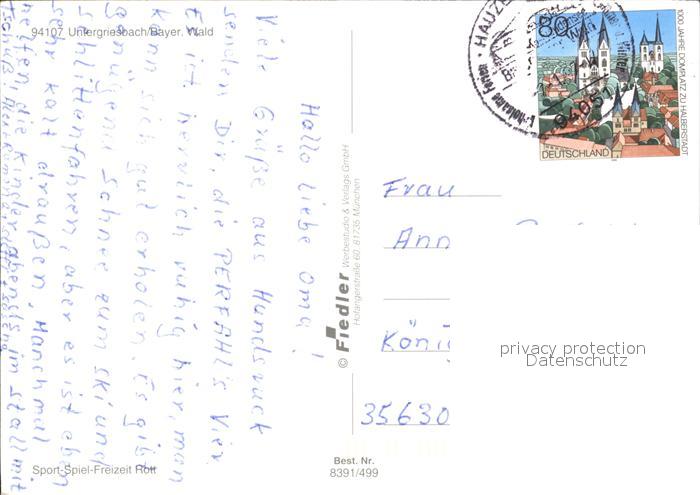alte Postkarte Untergriesbach Niederbayern Strassenpartien Panorama Kirche Inneres postalisch gelaufen Erhaltung siehe scans