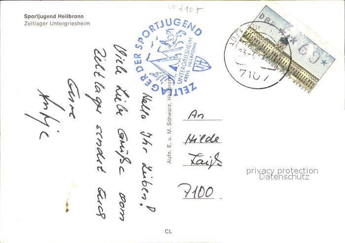 72577622 alte Postkarte Untergriesheim Sportjugend Heilbronn Zeltlager Lagerfeuer Schloss postalisch gelaufen Erhaltung siehe scans [FriedD77] KatCode: 11110008125005