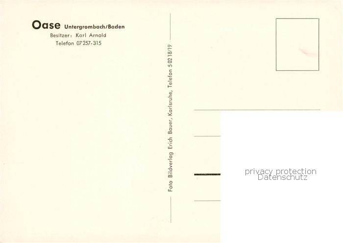 73845236 Untergrombach Hotel Oase postalisch nicht gelaufen Erhaltung siehe scans [WerneD78] KatCode: 11110008215009