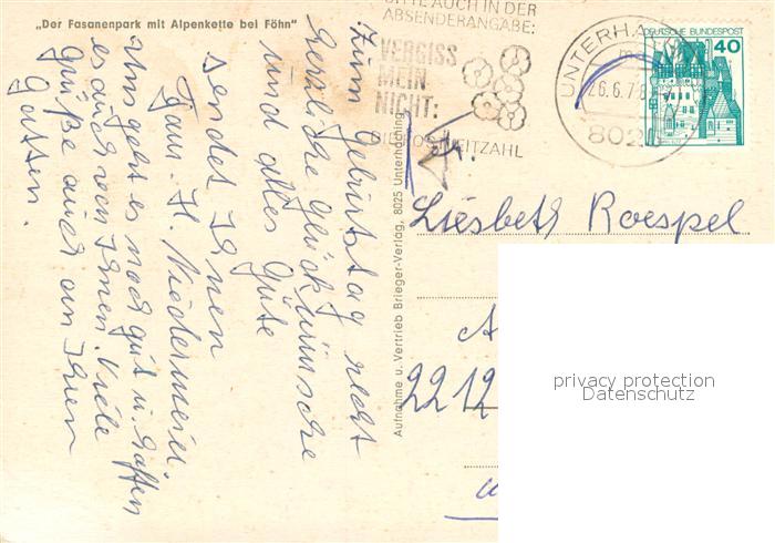73672822 alte Postkarte Unterhaching Fasanenpark mit Alpenkette Teilansichten postalisch gelaufen Erhaltung siehe scans [WerneD78] KatCode: 11110009184148