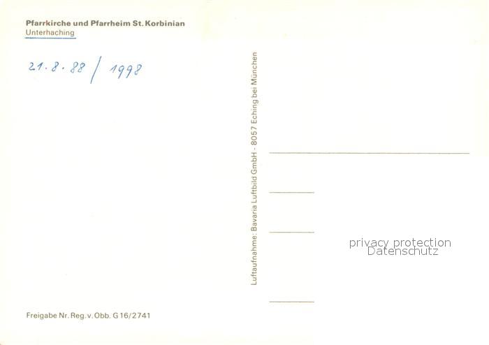 73657100 Unterhaching Pfarrkirche und Pfarrheim St. Korbinian Fliegeraufnahme postalisch nicht gelaufen Erhaltung siehe scans [FriedD77] KatCode: 11110009184148