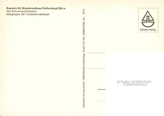 72677704 Unterharmersbach Baustein fuer Wanderrasthaus Kuhhornkopf Schwarzwaldverein Zeichnung Kuenstlerkarte postalisch nicht gelaufen Erhaltung siehe scans [FriedD77] KatCode: 11110008317146