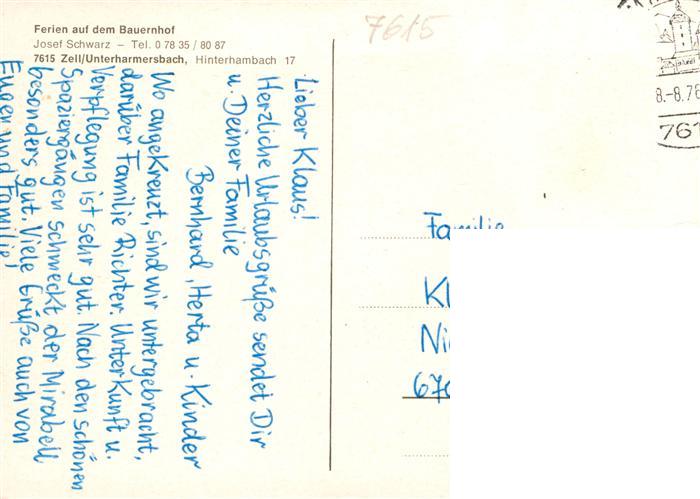 73931306 alte Postkarte Unterharmersbach Ferien auf dem Bauernhof Josef Schwarz postalisch gelaufen Erhaltung siehe scans [FriedD77] KatCode: 11110008317146