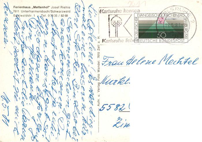73927984 alte Postkarte Unterharmersbach Ferienhaus Mattenhof postalisch gelaufen Erhaltung siehe scans [FriedD77] KatCode: 11110008317146