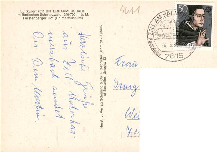 73928961 alte Postkarte Unterharmersbach Fuerstenberger Hof postalisch gelaufen Erhaltung siehe scans [FriedD77] KatCode: 11110008317146