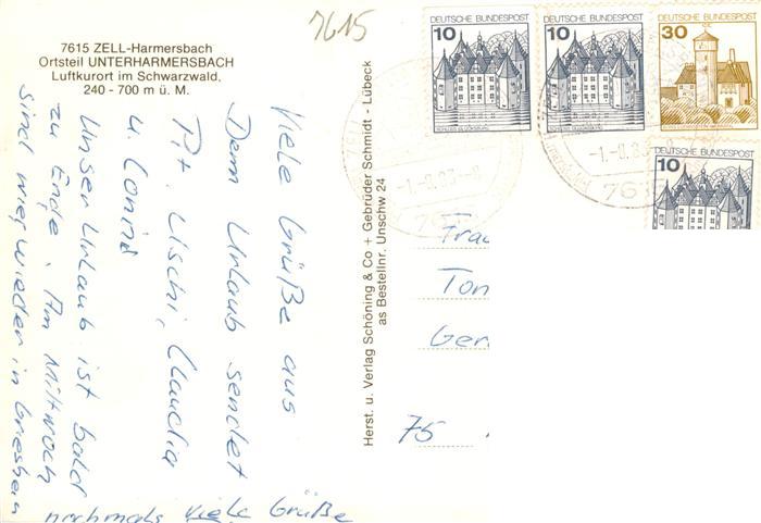 73930789 alte Postkarte Unterharmersbach Gasthaus Panorama Bruecke Wehr Brunnen postalisch gelaufen Erhaltung siehe scans [FriedD77] KatCode: 11110008317146
