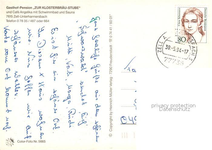 73323167 alte Postkarte Unterharmersbach Gasthaus Pension zur Klosterbraeu-Stube Schwimmbad postalisch gelaufen Erhaltung siehe scans [LiesaD40] KatCode: 11110008317146