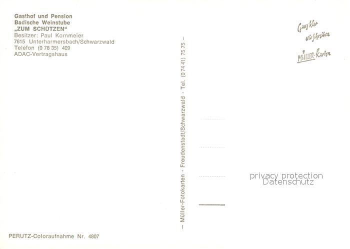 73087720 Unterharmersbach Gasthof Pension Badische Weinstube Zum Schuetzen postalisch nicht gelaufen Erhaltung siehe scans [KathaD81] KatCode: 11110008317146