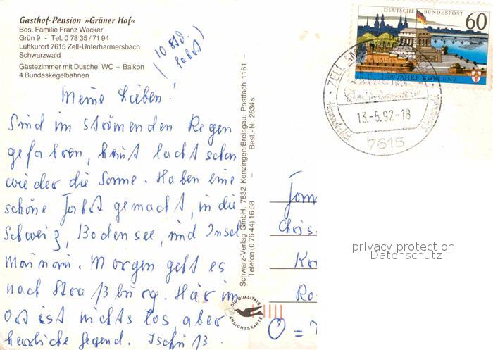 72663244 alte Postkarte Unterharmersbach Gruener Hof postalisch gelaufen Erhaltung siehe scans [NatalD47] KatCode: 11110008317146