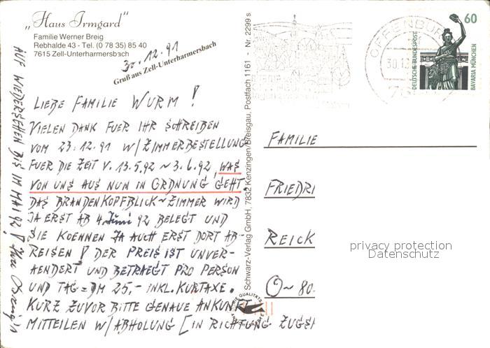 72338305 alte Postkarte Unterharmersbach Haus Irmgard postalisch gelaufen Erhaltung siehe scans KatCode: 11110008317146