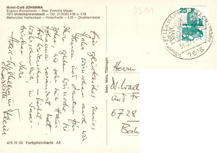 73927982 alte Postkarte Unterharmersbach Hotel Café Johanna postalisch gelaufen Erhaltung siehe scans [FriedD77] KatCode: 11110008317146