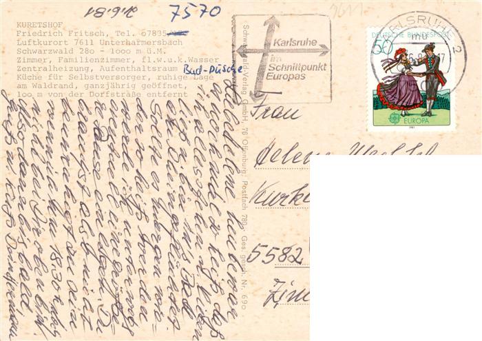 73927985 alte Postkarte Unterharmersbach Kuretshof Luftkurort im Schwarzwald postalisch gelaufen Erhaltung siehe scans [FriedD77] KatCode: 11110008317146