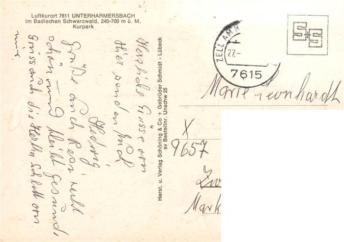 73928534 alte Postkarte Unterharmersbach Kurpark Luftkurort im Schwarzwald postalisch gelaufen Erhaltung siehe scans [FriedD77] KatCode: 11110008317146