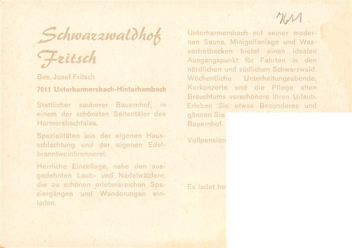 73928914 Unterharmersbach Schwarzwaldhof Fritsch Fliegeraufnahme postalisch nicht gelaufen Werbekarte (keine Postkarte) Erhaltung siehe scans [FriedD77] KatCode: 11110008317146