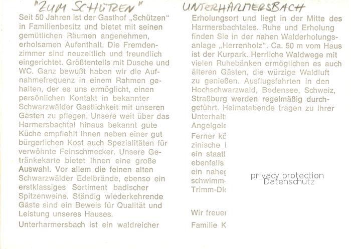 73086670 Unterharmersbach Zum Schuetzen postalisch nicht gelaufen Keine Postkarte (siehe scan) Erhaltung siehe scans [NatalD47] KatCode: 11110008317146