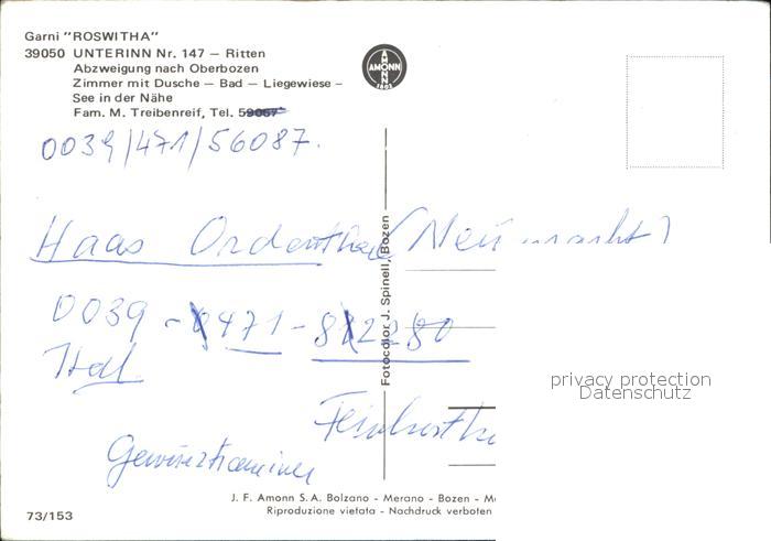Unterinn am Ritten Suedtirol Oberbozen Garni Roswitha postalisch nicht gelaufen Erhaltung siehe scans [AntonD74]