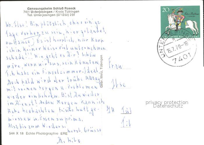 72032302 alte Postkarte Unterjesingen Genesungsheim Schloss Roseck postalisch gelaufen Erhaltung siehe scans KatCode: 11110008416041