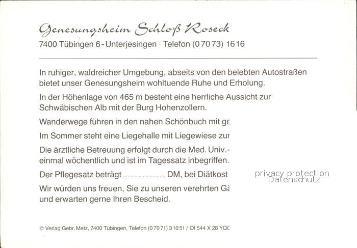 72421284 Unterjesingen Genesungsheim Schloss Roseck Landschaftspanorama postalisch nicht gelaufen Werbekarte (keine Postkarte) Erhaltung siehe scans KatCode: 11110008416041