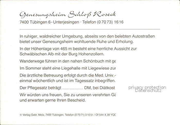 72417519 Unterjesingen Genesungsheim Schloss Roseck postalisch nicht gelaufen Werbekarte (keine Postkarte) Erhaltung siehe scans KatCode: 11110008416041