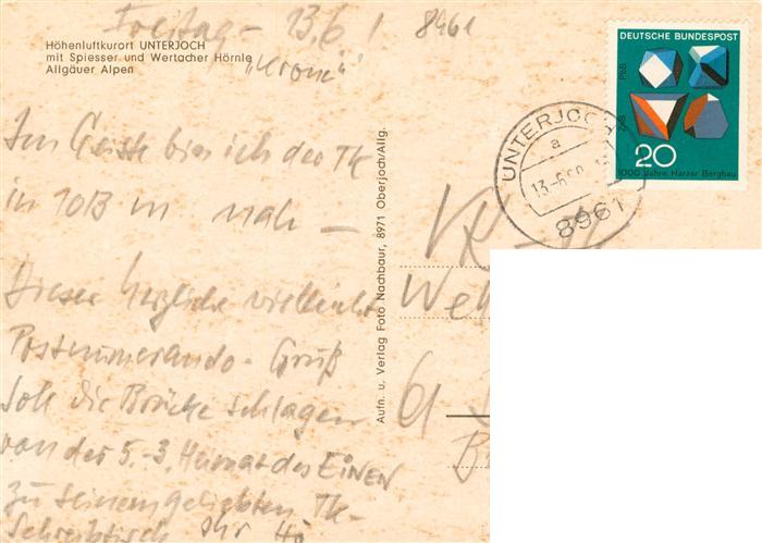 73915425 alte Postkarte Unterjoch Bad Hindelang Fliegeraufnahme mit Spiesser und Wertacher Hoernig Allgaeuer Alpen postalisch gelaufen Erhaltung siehe scans [FriedD77] KatCode: 11110009780123