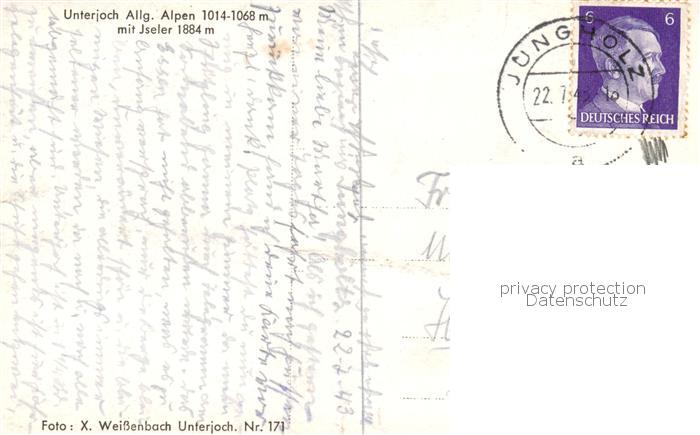 73810967 alte Postkarte Unterjoch Bad Hindelang Landschaftspanorama Blick gegen Iseler Allgaeuer Alpen postalisch gelaufen Erhaltung siehe scans [FriedD77] KatCode: 11110009780123
