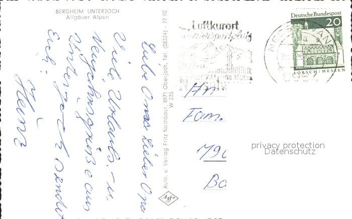 72145257 alte Postkarte Unterjoch Bergheim postalisch gelaufen Erhaltung siehe scans KatCode: 11110009780123