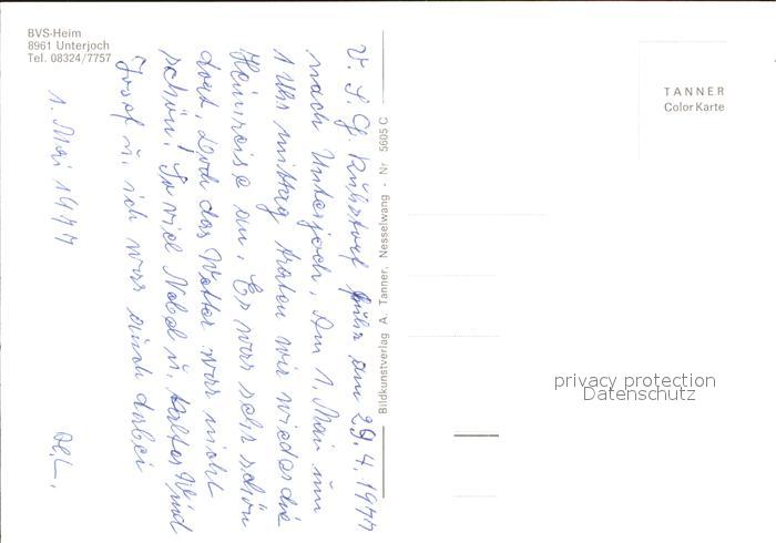 71974217 Unterjoch BVS Heim postalisch nicht gelaufen Erhaltung siehe scans KatCode: 11110009780123