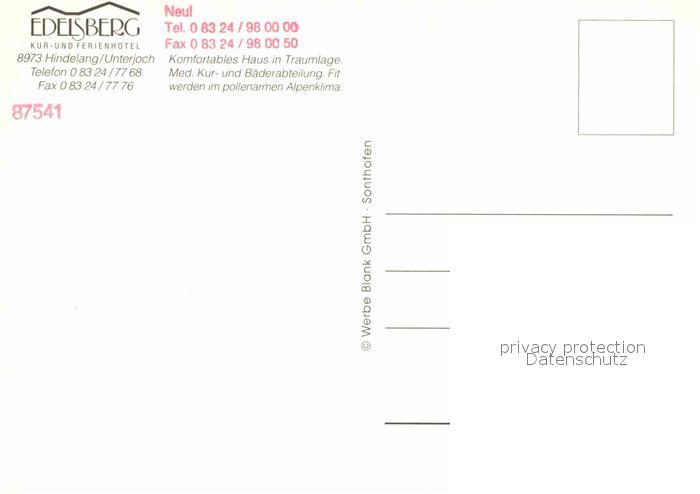 72872691 Unterjoch Edelsberg Hotel postalisch nicht gelaufen Erhaltung siehe scans [LiesaD40] KatCode: 11110009780123