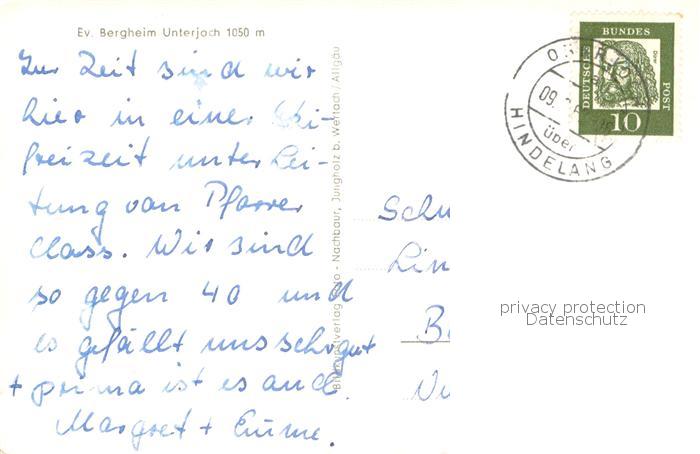73763203 alte Postkarte Unterjoch Ev Bergheim postalisch gelaufen Erhaltung siehe scans [WerneD78] KatCode: 11110009780123