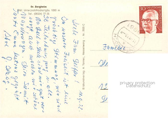73787754 alte Postkarte Unterjoch Ev Bergheim postalisch gelaufen Erhaltung siehe scans [WerneD78] KatCode: 11110009780123