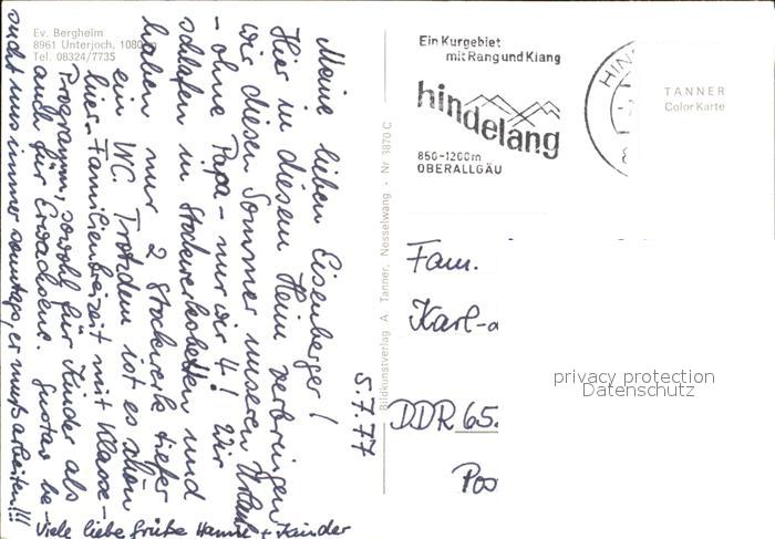 72496666 alte Postkarte Unterjoch Evangelisches Bergheim Allgaeuer Alpen postalisch gelaufen Erhaltung siehe scans KatCode: 11110009780123
