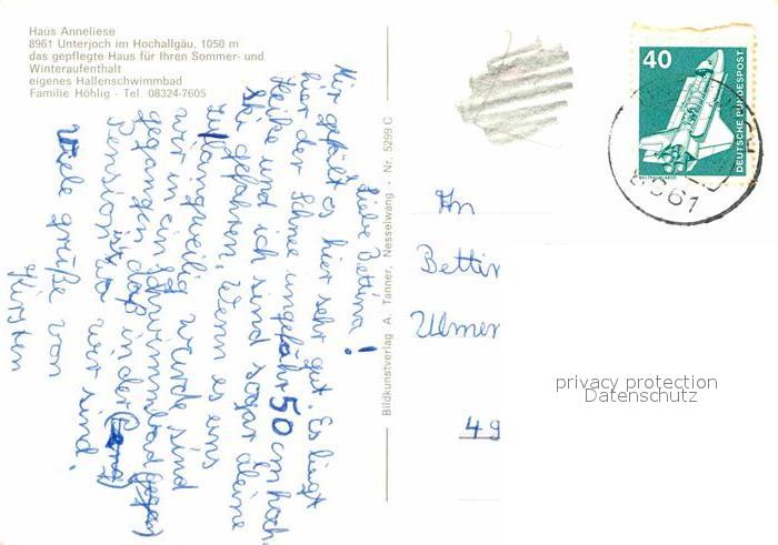 72761058 alte Postkarte Unterjoch Haus Anneliese Schwimmbad postalisch gelaufen Erhaltung siehe scans [LiesaD40] KatCode: 11110009780123