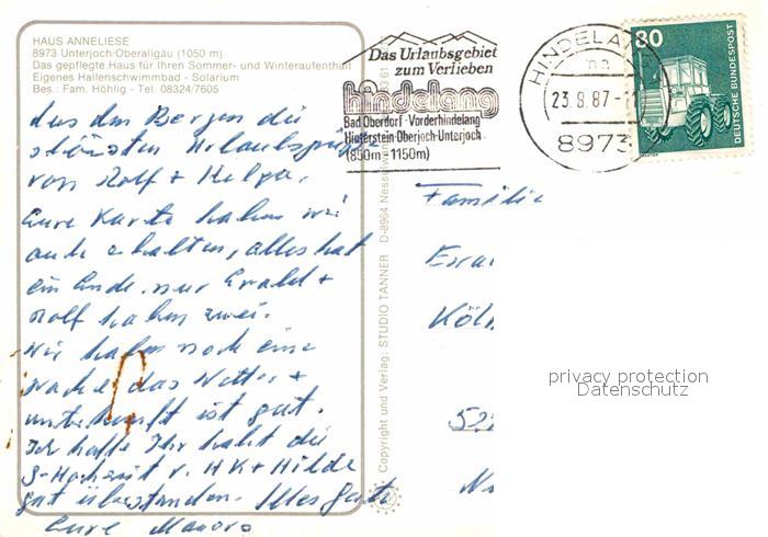 72839481 alte Postkarte Unterjoch Haus Anneliese postalisch gelaufen Erhaltung siehe scans [AndreD76] KatCode: 11110009780123
