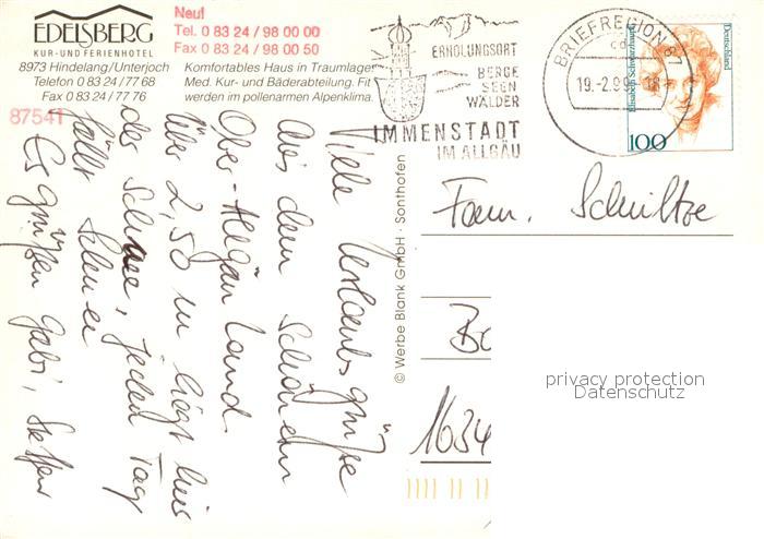 73659812 alte Postkarte Unterjoch Kur- und Ferienhotel Edelsberg Winterimpressionen Allgaeuer Alpen postalisch gelaufen Erhaltung siehe scans [FriedD77] KatCode: 11110009780123