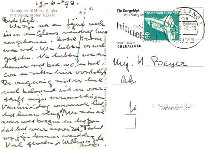 73314578 alte Postkarte Unterjoch mit Sorgschrofen postalisch gelaufen Erhaltung siehe scans [LiesaD40] KatCode: 11110009780123