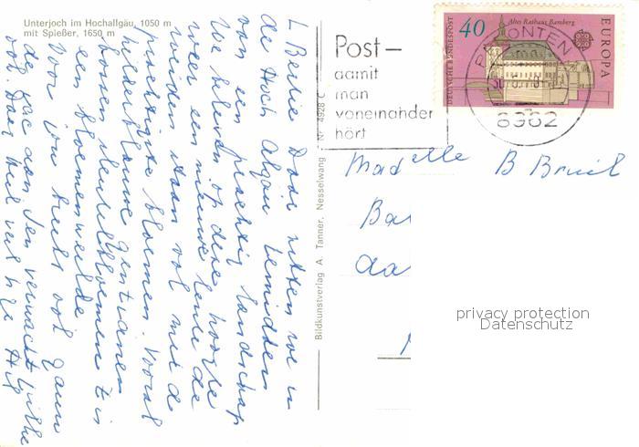 72664031 alte Postkarte Unterjoch Panorama mit Spiesser Allgaeuer Alpen postalisch gelaufen Erhaltung siehe scans [FriedD77] KatCode: 11110009780123